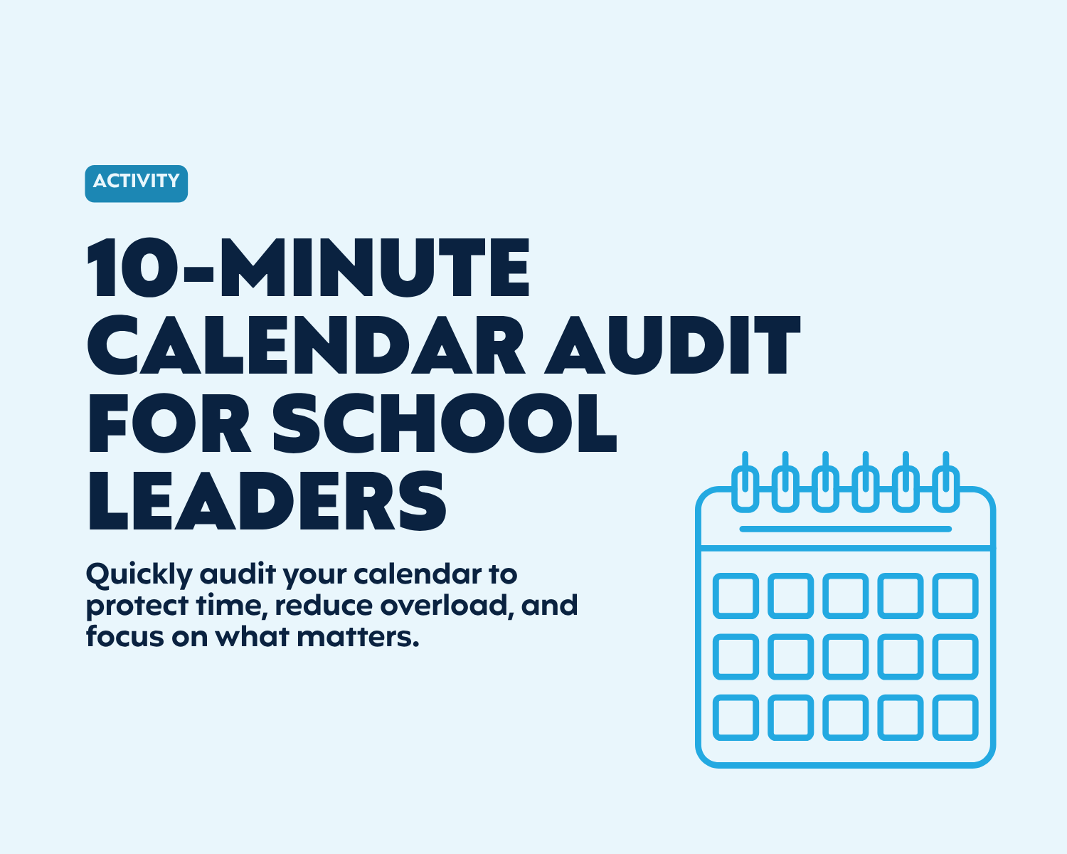 A quick, practical tool to help school leaders take back their time, protect priorities, and lead with intention instead of urgency. In just 10 minutes, this calendar audit helps you review your schedule, spot patterns, and make small, high-impact shifts.