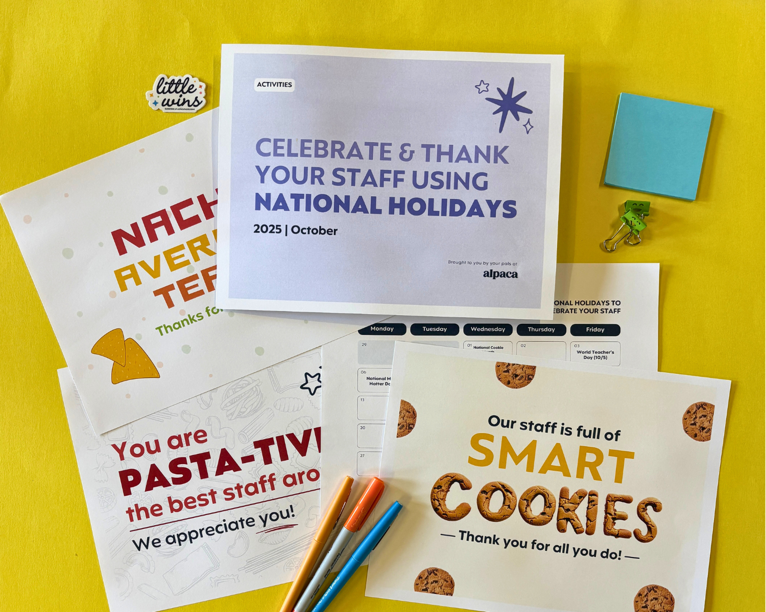 Celebrating together boosts morale and reinforces a supportive work environment by reminding staff of their value within the school community. Try out the holidays and ideas we've put together to make your staff feel special and appreciated throughout the year!