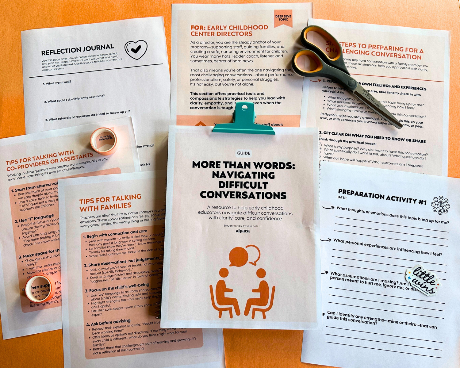 Walk through six practical steps for preparing, hosting, and following up after a challenging conversation—with reflection tools and real examples for families, staff, and colleagues. Inside, you’ll find guided activities, printable planning pages, and conversation tips tailored to early childhood settings.
