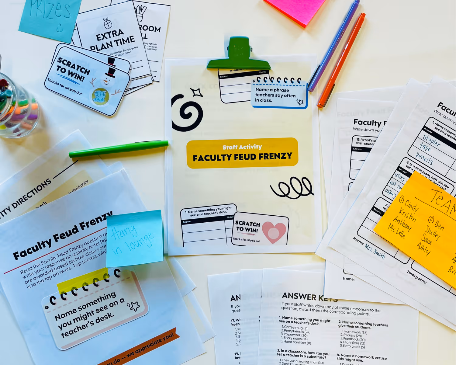 We've all seen the show, now bring it to the school! Try this simple, ready-to-go activity to encourage collaboration, quick thinking, and fun for your staff! We’ve included questions that reflect teachers' everyday experiences, making it easy to connect and engage. Try it out as a staff meeting icebreaker or add some excitement to the school day!