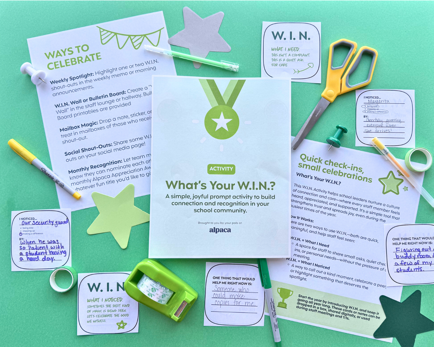 This W.I.N. Activity helps school leaders nurture a culture of connection and care—where every staff member feels heard, appreciated, and supported. It’s a simple tool that strengthens trust and spreads joy, even during the busiest seasons.
